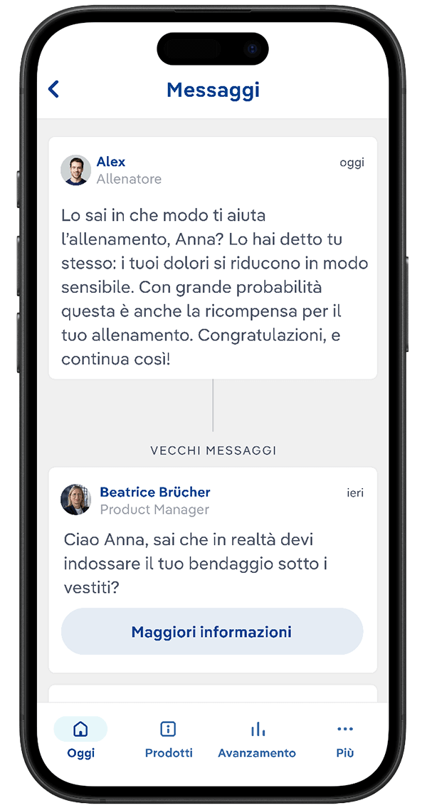 A seconda dei tuoi progressi nell’allenamento, i nostri esperti ti forniranno informazioni utili e facilmente comprensibili. Così potrai approfondire la conoscenza del tuo prodotto Bauerfeind e di vari argomenti riguardanti la salute.