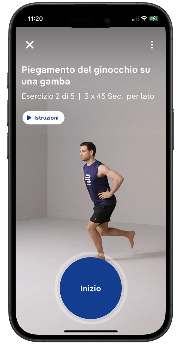 All’inizio l’app richiede di inserire alcuni dati che sono necessari per l’elaborazione del programma di allenamento personalizzato. Nel corso del programma, l’app ti chiederà regolarmente come ti senti e che progressi hai fatto. Così il programma di allenamento verrà costantemente aggiornato, adattandolo alla situazione attuale. In caso di dubbio, parlane assolutamente con il tuo medico o fisioterapista. -