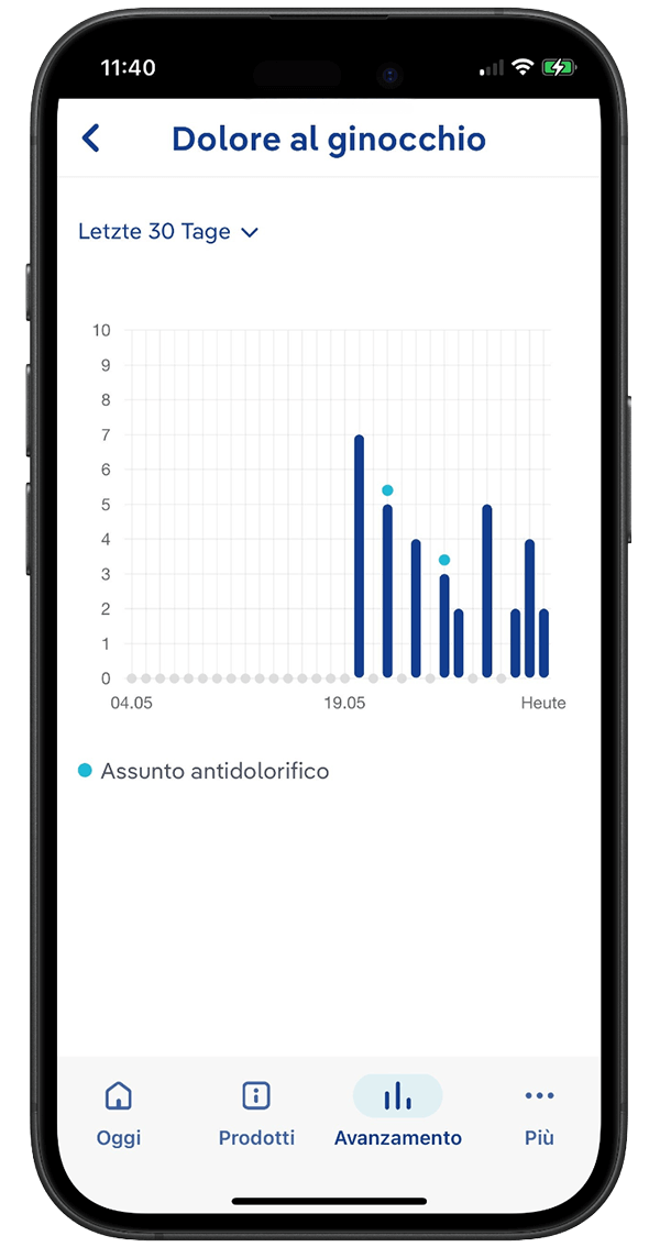 Nel corso del programma, il trainer ti chiederà regolarmente come ti senti e adatterà il programma di allenamento adeguandolo alle tue condizioni. Documenta al contempo la tua curva del dolore, per avere un monitoraggio costante dei tuoi miglioramenti.